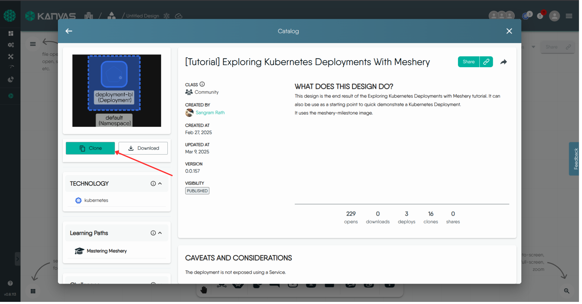 Creating designs in Kanvas is a seamless process that enables you to visualize, configure, and manage cloud-native infrastructure efficiently. This chapter will guide you through various methods of creating designs, whether starting from scratch, importing configuration files like Helm charts or Kubernetes manifests, or utilizing published designs from the Layer5 Cloud catalog.